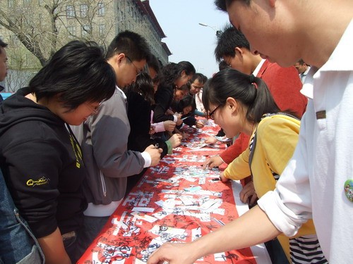 本次签名活动有近1000名同学参与。他们表示会常树防火意识,为创平安工程而努力。