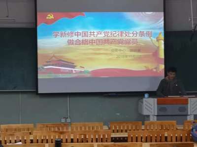 11月9日晚18:30,pp电子官方网站党务中心召开“学新修中国共产党纪律处分条例,做合格中国共产党党员”主题会议,会议由pp电子官方网站党务中心副主任陈进勇主持,pp电子官方网站学生党支部发展对象参加了此次会议。