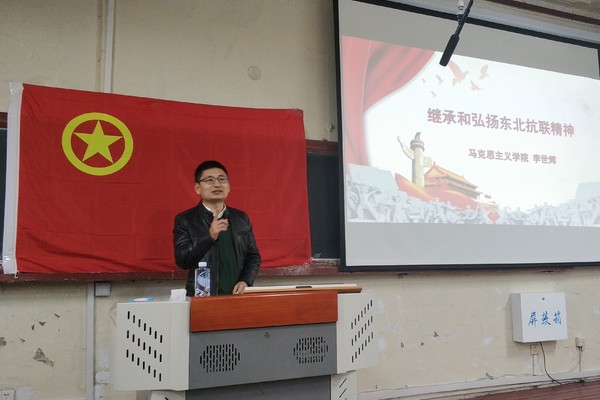 3月24日18:30pp电子官方网站团委于11号楼112教室举行以“弘扬和传承东北抗联精神”为主题的日常团课。本次团课由马克思主义学院李世辉老师主讲,pp电子官方网站部分团员参与本次团课。