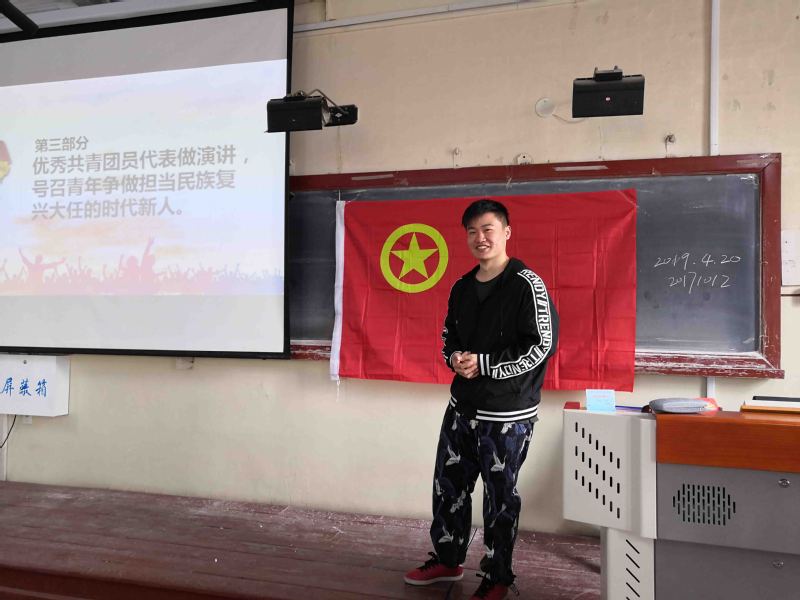 活动开始,首先全体团员青年起立,齐唱国歌。接着举行团旗下的演讲:由1名优秀共青团员代表在团旗下,围绕在新时代继承和弘扬五四精神,争做担当民族复兴大任的时代新人进行演讲。之后全体团员一起重温入团誓词:由1名团员代表领誓,全体团员重温入团誓词。最后,全体齐唱团歌:全体团员在活动现场齐唱共青团团歌。以及互动展示:全体团员在现场写下活动感悟和奋斗目标,进行了集中展示。此次活动为同学们指明了道路,坚定了同学们的学习目标,使同学们获益匪浅。