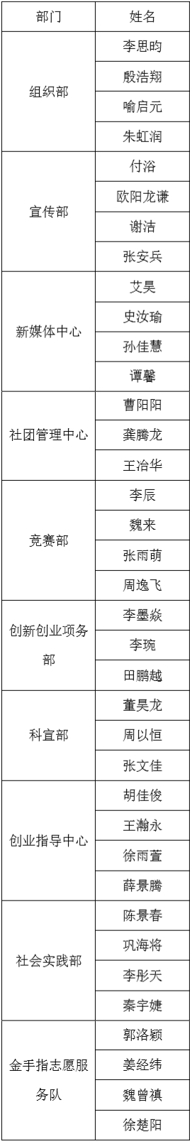 根据自愿报名,资格审查及民主评议答辩,经学院审核,2019-2020届团委、学生会副职学生干部拟聘任结果公示如下,如有异议请于7月4日10:00前到学生工作办公室(基础楼419室)反映。