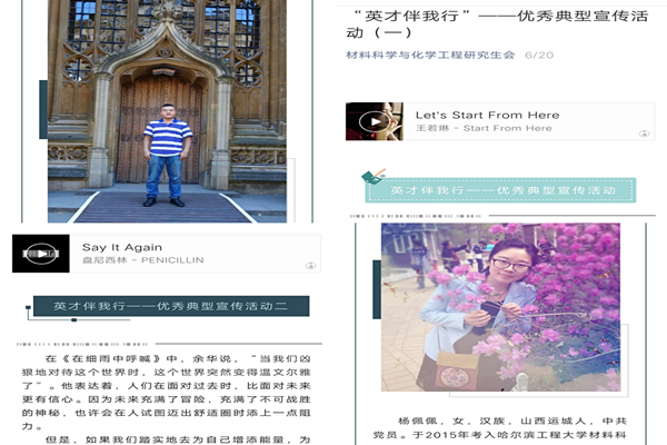 2019年6月,pp电子官方网站对本院科研成果杰出的研究生进行采访,并将其科研经历与心得于基础楼进行展示并在学院研会公众号进行微信推送宣传,以对本院研究生树立榜样,起到模范带头作用。