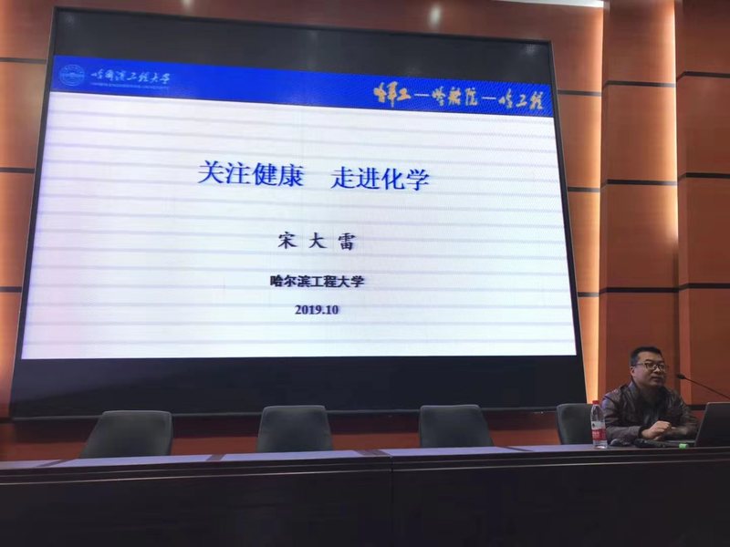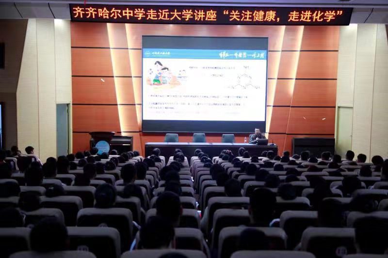 10月16日下午,我院教师宋大雷到齐齐哈尔市齐齐哈尔中学,为齐中学子们作了一场名为《关注健康,走进化学》的讲座,受到了校方的热情接待。齐中高一全体师生在报告厅现场听取了讲座,并以同步转播的形式让其他年级师生也感受到了化学的魅力。