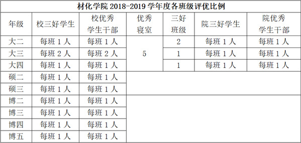 1.校三好学生、校优秀学生干部、校三好班级、校优秀寝室各班级、院三好学生、院优秀学生干部申报名额分配情况: