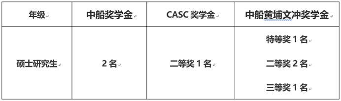 1、参照研究生国奖评选标准,进入研究生国奖答辩的同学中未获国奖的同学按照票数(成绩)顺序获得中船奖学金(限定2018、2019级硕士研究生)、CASC奖学金(限定2019级硕士研究生)或中船黄埔文冲奖学金特等奖、二等奖学金、三等奖。