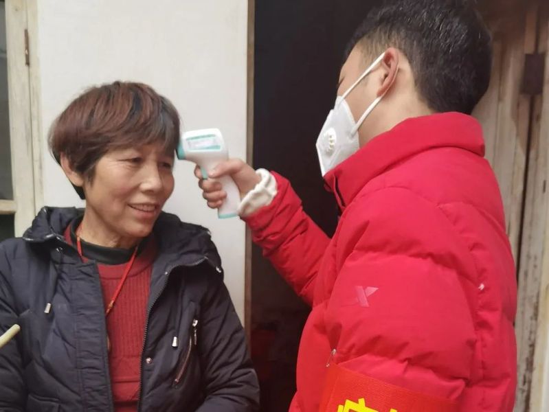 贡献自己的一份力,负责测量体温以及登记外出回村人员情况