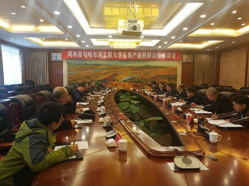 15日上午,在鸡西市专家接待服务中心综合楼二楼会议室召开“鸡西市与pp电子官方网站石墨产业科研合作座谈会”。会议由鸡西市委常委、副市长叶迎春主持,调研组全体成员与鸡西市委组织部、市工信局、科技局、发改委、市场局和石墨产业升级发展服务中心等部门负责同志参会,重点围绕鸡西石墨产业发展实际需求、对接洽谈科研合作项目、市校双方就共建碳石墨技术研究进行深入交流磋商。副市长叶迎春说,鸡西石墨产业目前正处于高质量发展阶段,“十四五”期间,将秉持“高端化、智能化、绿色化、整合化”的发展理念,瞄准石墨新产品和新技术领域,谋划一批关键环节项目。目前,石墨产业发展急需科技助力,希望碳石墨技术研究院尽快落地,以强大的科研实力,助力我市在石墨深加工技术上实现新突破。院长杨飘萍表示,碳石墨技术研究院作为新型研发机构,对市校开展“产学研”合作具有示范和引领作用。学院将以此为契机,全力探索共建碳石墨技术研究院机构的建设模式,期待早日与鸡西市共建完成碳石墨技术研究院,推进“产学研”深度对接和科技创新合作,实现双方共赢。
