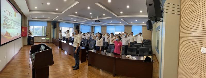 庆祝大会结束后,学院党委组织新发展党员代表进行入党宣誓,其他参会党员一起重温入党誓词。全体参会党员面对党旗庄严宣誓,表达了对党的坚定信念和真挚情感。