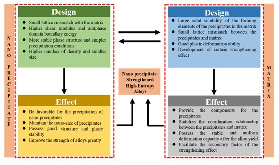 图七包括两个方面:纳米相和基体相。多组分/高密度纳米相在保持良好塑性的同时,对强度的贡献要更大。基体相应具有良好的变形能力,提供强化效果的二次来源。纳米相与基体相并不是孤立的,应注意这两相之间的配合。