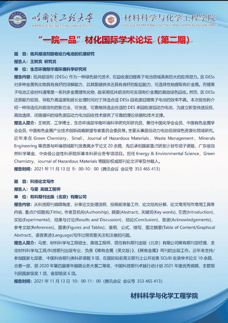 “一院一品”材化国际学术论坛(第二期)