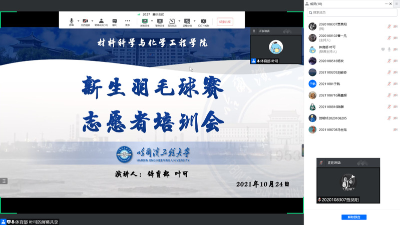 本次活动在学院各年级招募志愿者8名,并于10月24日由体育部负责人叶可通过腾讯会议进行了线上培训,主要负责选拔赛秩序维护、签到、执裁等工作。