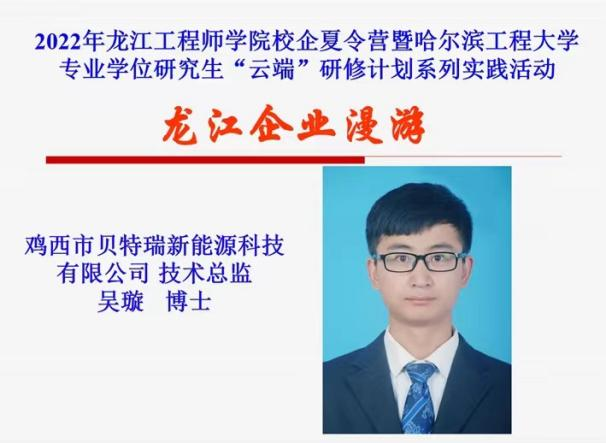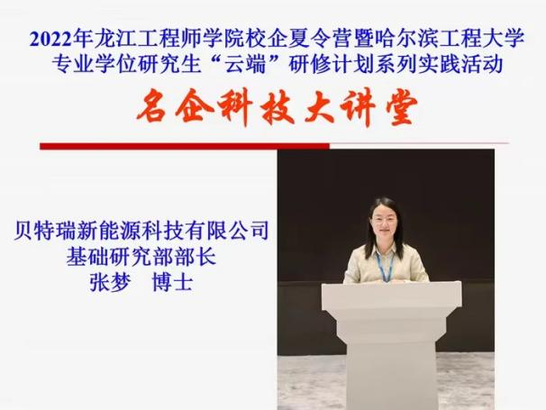 贝特瑞新材料集团股份有限公司高级工程师吴璇围绕公司发展历程、业务分布、公司产品、人员招聘、定制化人才培养开展“龙江企业漫游”专题讲座,重点培养学生行业企业实际工程环境及岗位适应能力。