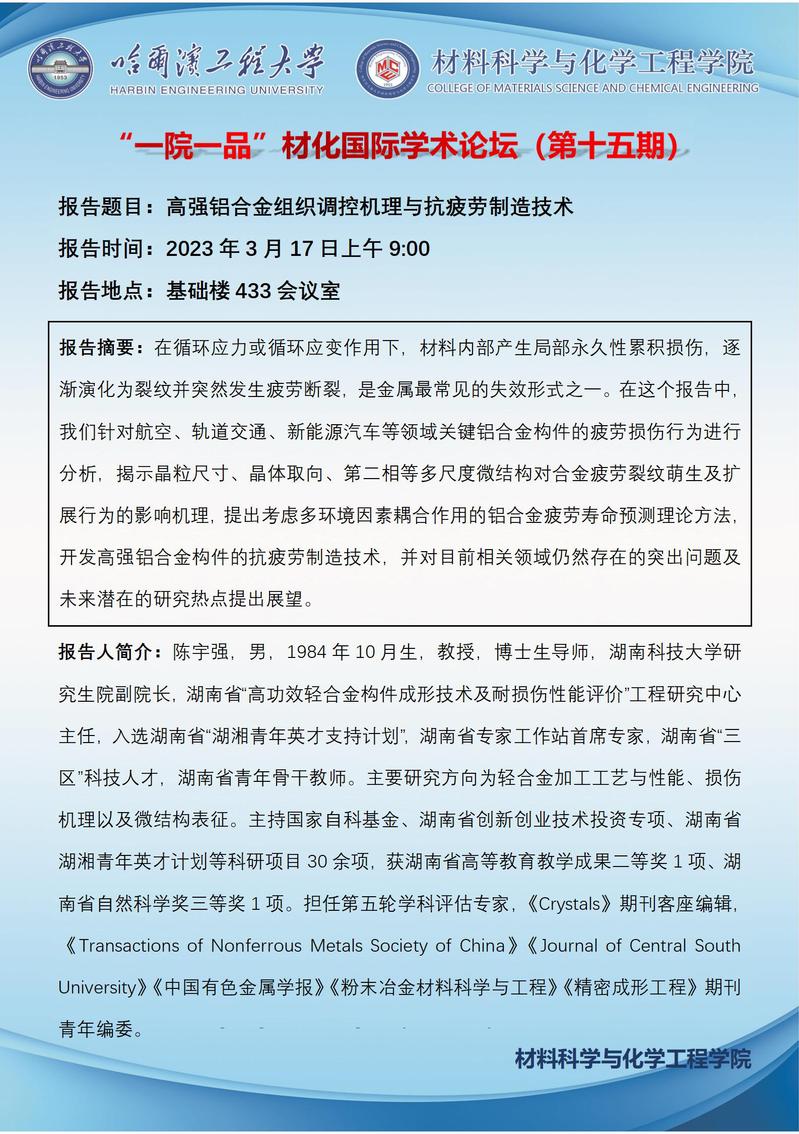 “一院一品”材化国际学术论坛(第十五期)