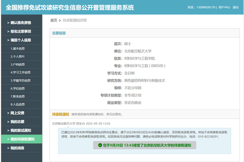 在pp电子官方网站,他感受到了前所未有的学习氛围。老师关心学生、有问必答,同学互帮互助、共同进步,这给予他极大的动力。刚上大一时,他的成绩并不突出,这使他焦急万分,经常找老师、学长请教,傍晚的图书馆、夜色下的11号楼见证了他的孜孜不倦。四年间,他所学总计69门课程中,48门满绩点,其中34门95分以上,学年加权成绩93.93位列专业第二名,综合成绩95.59位列专业第一名,具有十分丰富的专业知识储备。他连续三年获得校一等奖学金,连续两年获得国家奖学金。最终,他以专业第二名的成绩学优推免至北京航空航天大学材料科学与工程学院。