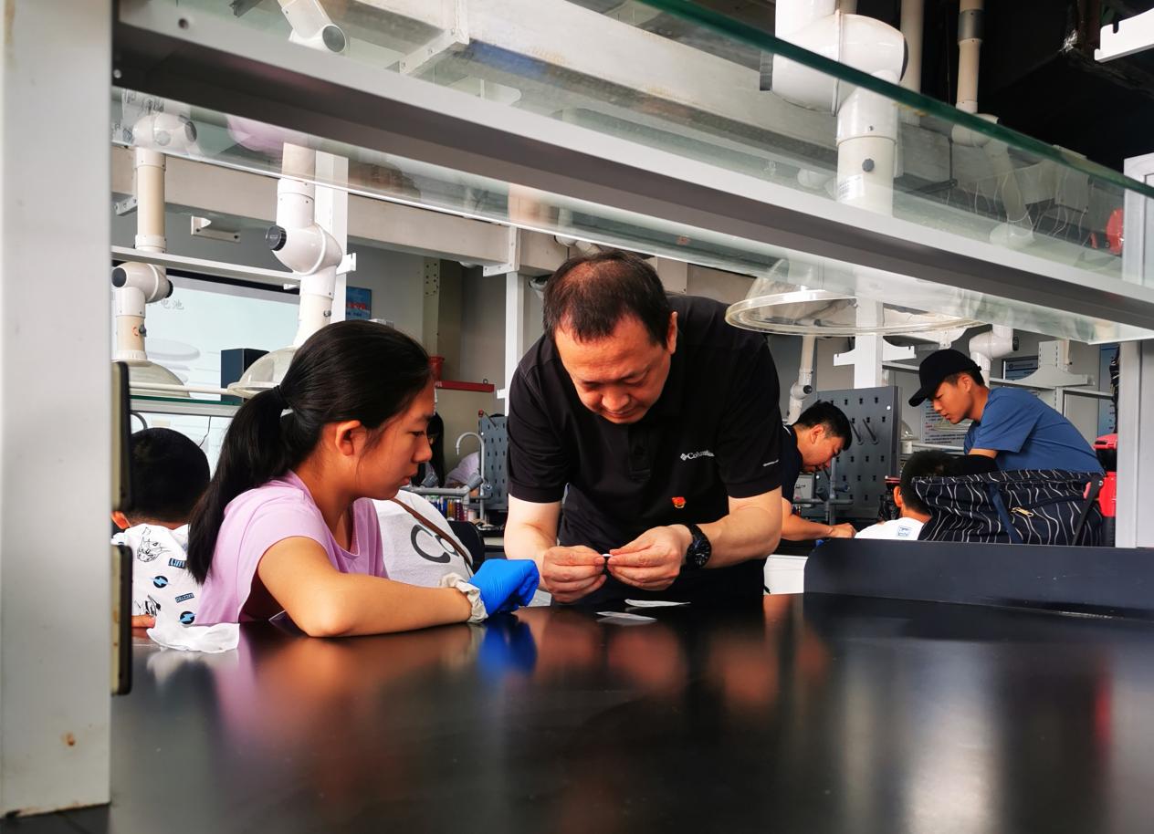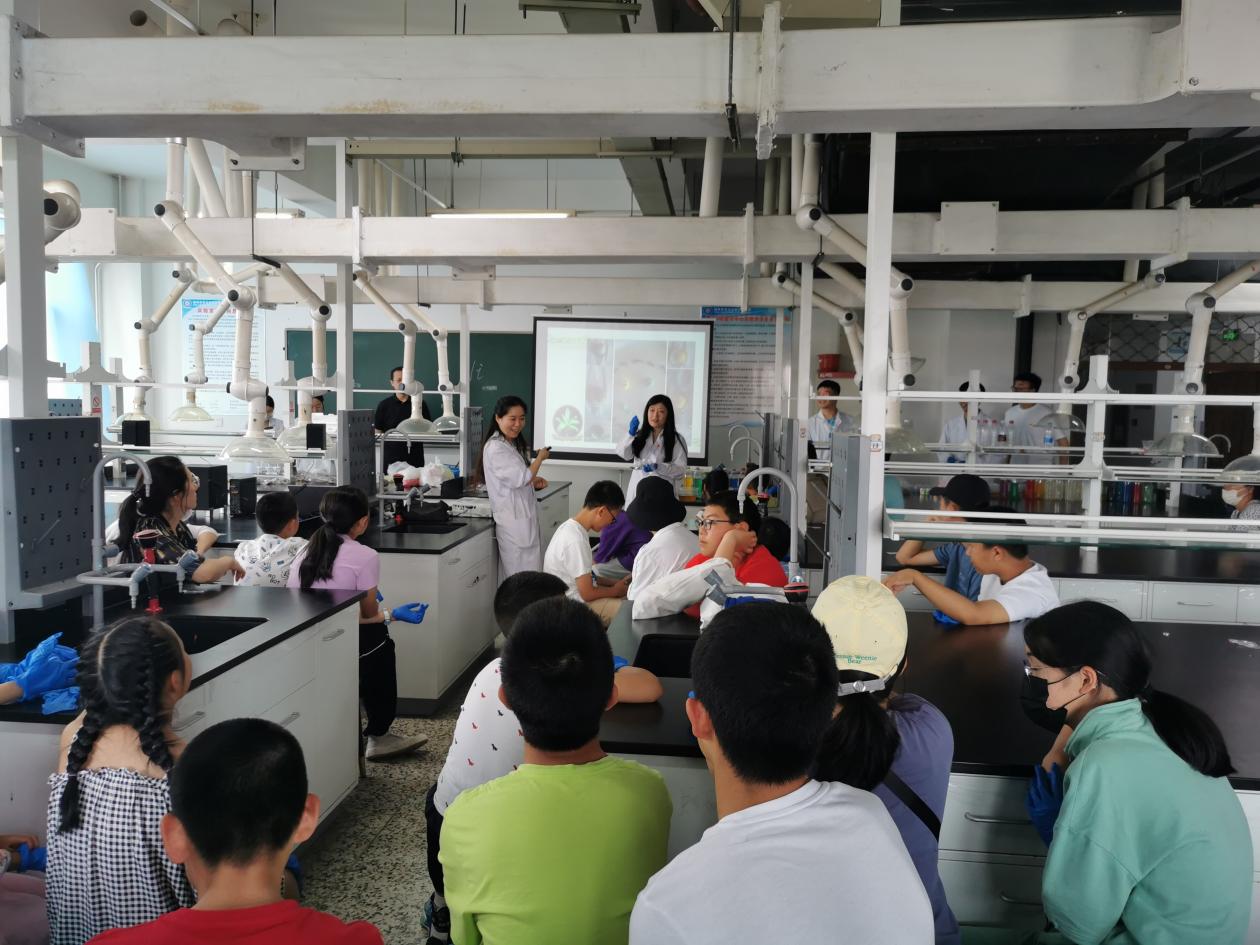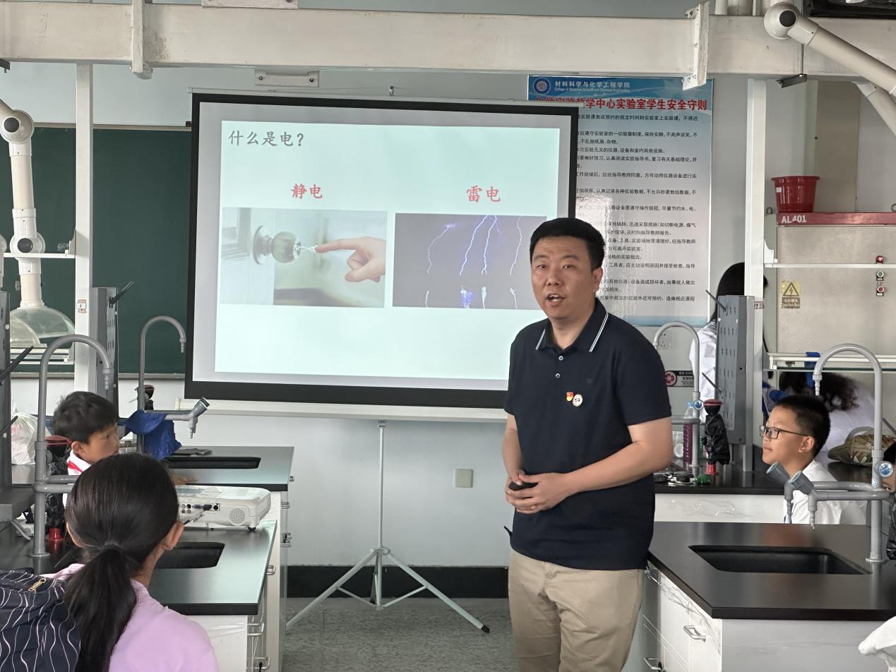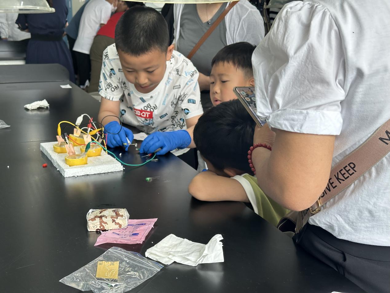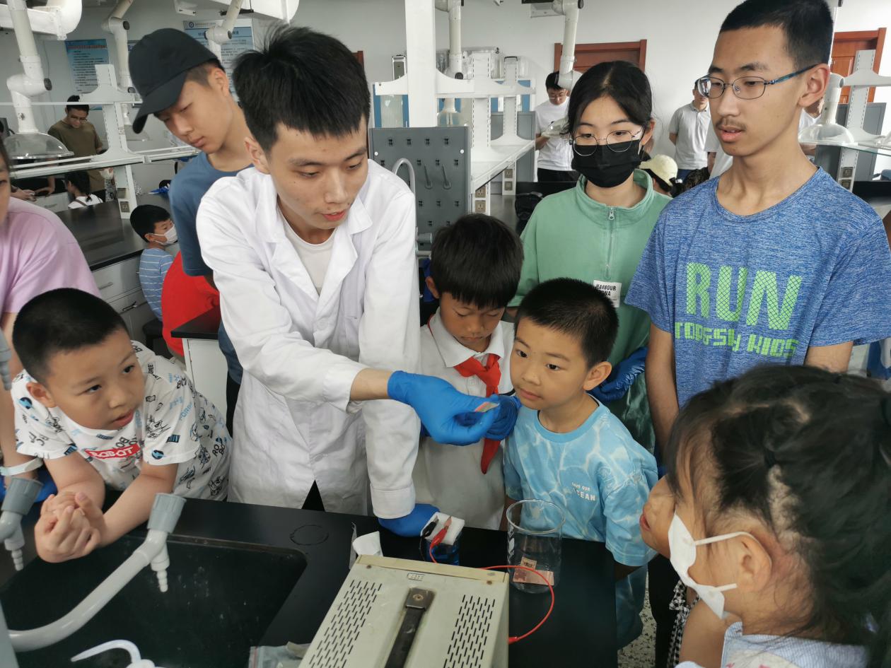 接下来由实验教学与分析测试中心教工党支部书记白建伟、党员苏守政,新能源材料与化学工程研究所教工党支部书记殷金玲、党员朱凯、高胤羲、姚佳欣、宫琳丹、王玉丹,海洋资源与环境化工研究所教工党支部书记赵方波依次为孩子们开展了扫描电子显微镜下神奇的微观世界、物理法产电、水果电池、锌离子电池、电镀铜、电解水制氢、创意百变水球、膜法处理污水实验。学院学生党员、入党积极分子志愿者李卓、刘力宁、孙鹏、赵丹、张鸿举、刘华宇、王丹、吴明聪配合讲解。