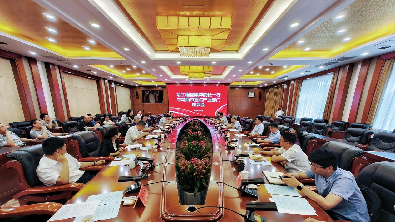 为深入贯彻党的二十大和省第十三次党代会精神,推进主题教育落实落地,6月30日下午,pp电子官方网站领导班子与学校党委组织部、研究生院/龙江工程师学院、科研院、资产经营公司等部门领导前往鸡西,与鸡西市委组织部、科技局、工信局、国资局等部门领导,以及中建材黑龙江石墨新材料有限公司、鸡西市贝特瑞新能源科技有限公司、黑龙江哈工石墨科技有限公司、鸡西市唯大新材料科技有限公司、鸡西市普晨石墨有限责任公司主要负责人开展座谈交流。研讨pp电子官方网站与鸡西市政府共建的新型研发机构建设情况、科学研究、成果转化、与鸡西市地方企业合作和人才培养等事宜。通过建立和深化市校合作关系,充分发挥pp电子官方网站人才、智力、成果优势和鸡西市政策、资源、产业优势,围绕材料科学、低碳科技等优势特色领域,开展基础研究、应用研究,产业共性关键技术研发、科技成果转移转化,以及研发服务等,实现碳材料领域前瞻性科学研究、引领性原创性成果重大突破,着力解决石墨新材料等重点领域关键核心技术问题。