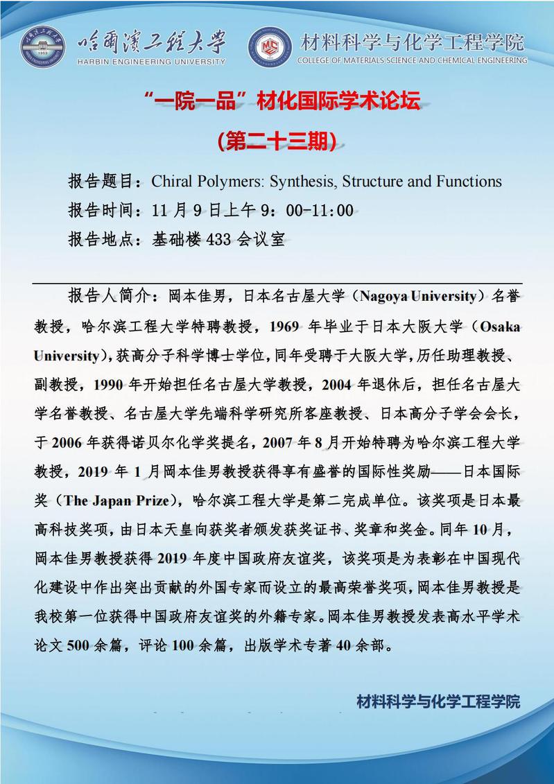 “一院一品”材化国际学术论坛(第二十三期)