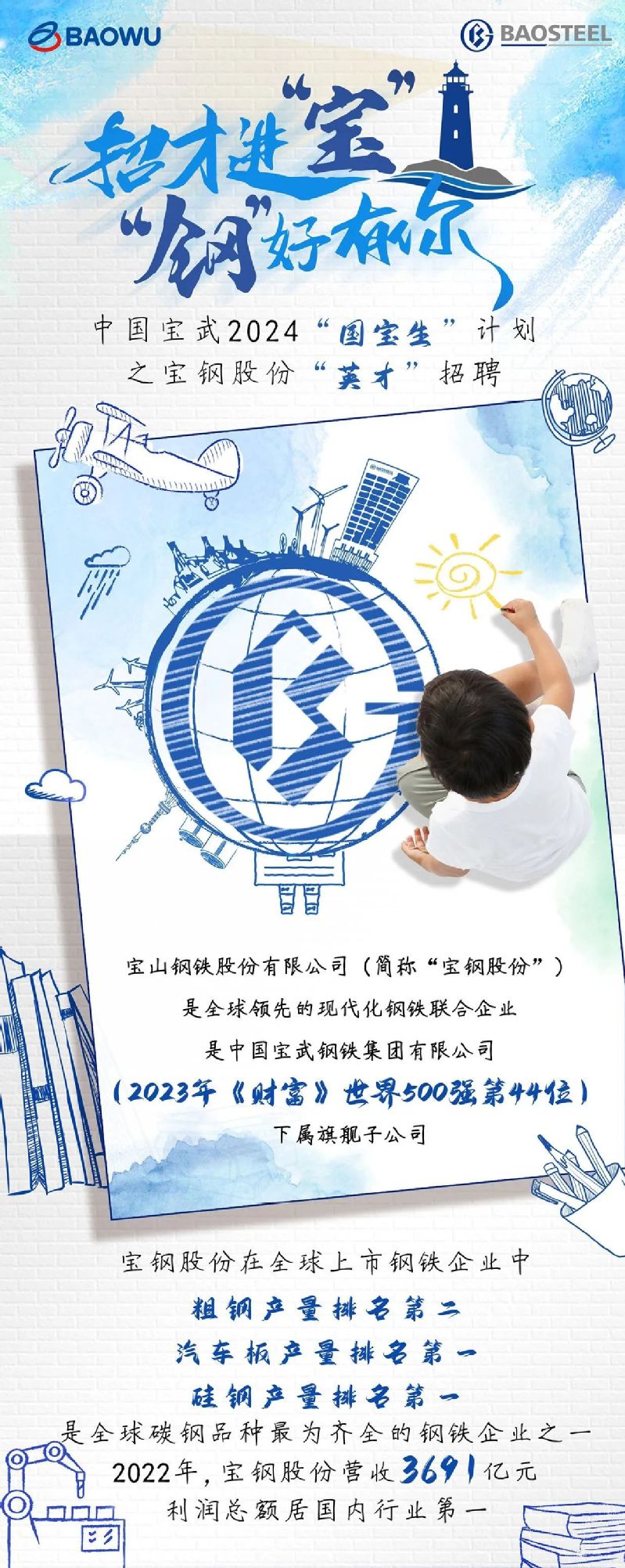 中国宝武2024“国宝生”计划之宝钢股份“英才”招聘