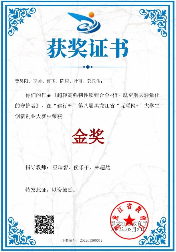 除了专业研究外,我积极参加各类科创比赛。从加入学长的团队积累经验,到自己能够独当一面,这些宝贵的经历都让我快速成长。我共获得国家级奖项5项,省部级奖项8项,校级奖项十余项。值得一提的是,大二时我第一次作为负责人参加超一流赛事第八届“互联网+”大学生创业大赛,比赛期间边完善项目,边准备参赛材料,最终获得省级金奖。大三时我参与了第十八届“挑战杯”全国大学生课外学术科技作品竞赛,负责项目中合金强塑性提升部分实验以及相关材料撰写工作,获得国家级特等奖,创造学院最好记录;同时在第九届中国国际“互联网+”大学生创新创业大赛中获得国家级铜奖。