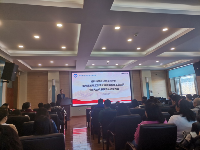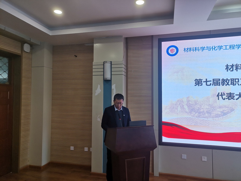 学院副院长、工会主席李峻青宣读《学校关于材料科学与化学工程学院出席第七届教职工代表大会和第九届工会会员代表大会代表候选人的批复》文件。