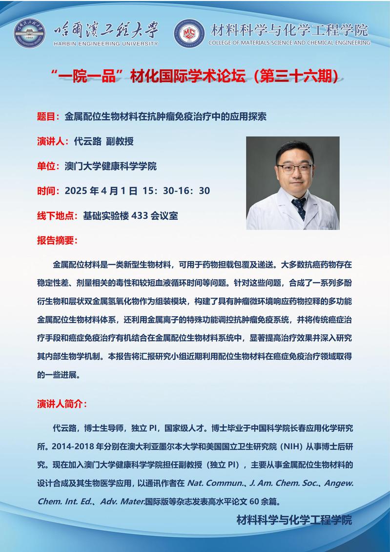 “一院一品”材化国际学术论坛(第三十六期)