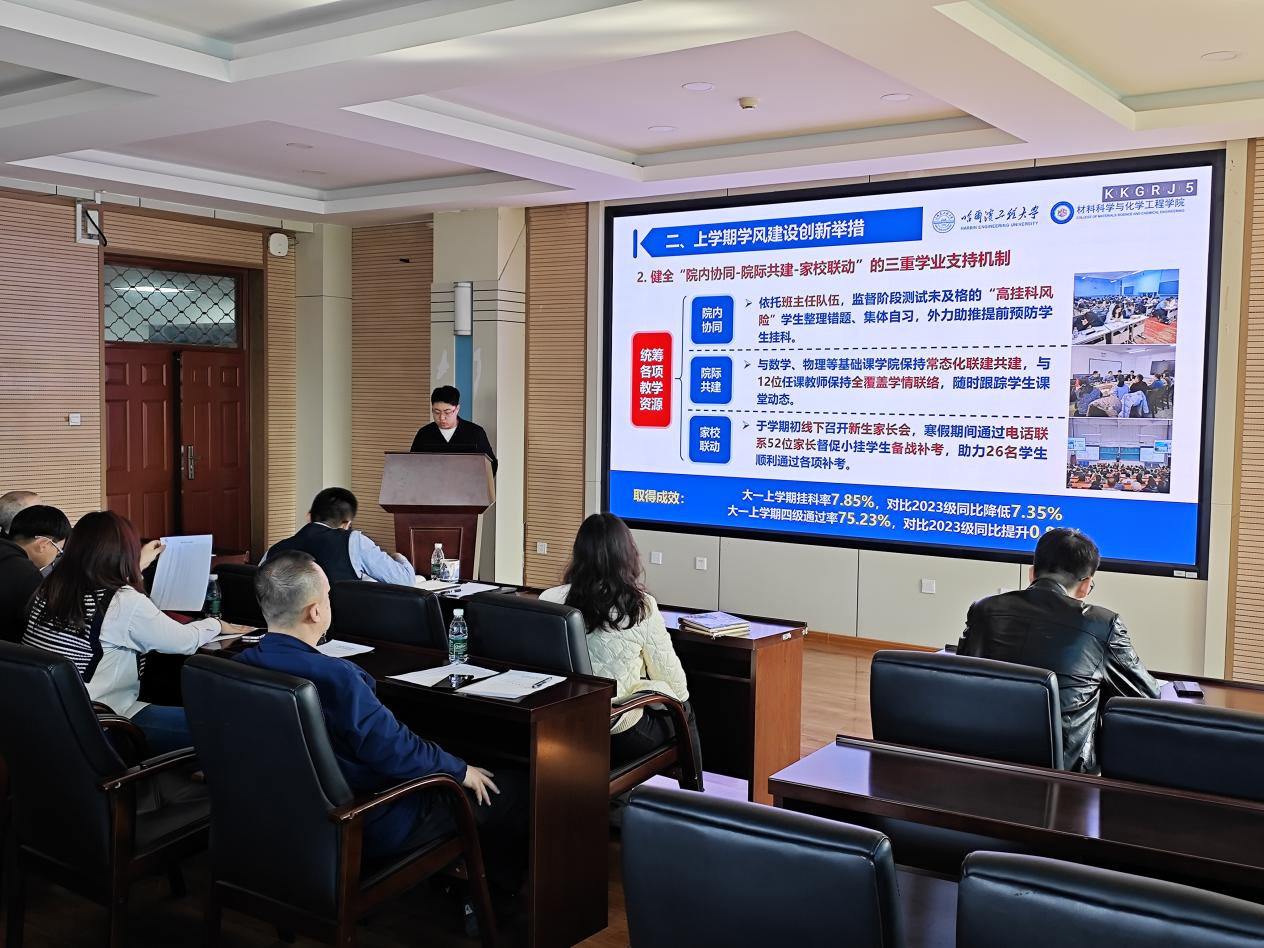 会议伊始,徐硕汇报了2024级本科生大一第一学期的学风建设情况,并围绕新学期工作重点和难点提出了具体举措和工作建议。