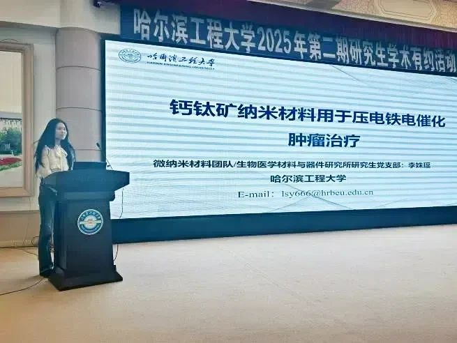 微纳米材料团队、2024年度校长基金获得者李姝瑶博士作《钙钛矿纳米材料用于压电铁电催化肿瘤治疗》报告。报告从自身科研经历和基础研究方法出发介绍了未来如何通过优化压电热电纳米材料的结构与功能进一步推动精准医疗的发展,为肿瘤治疗提供更有效的解决方案。