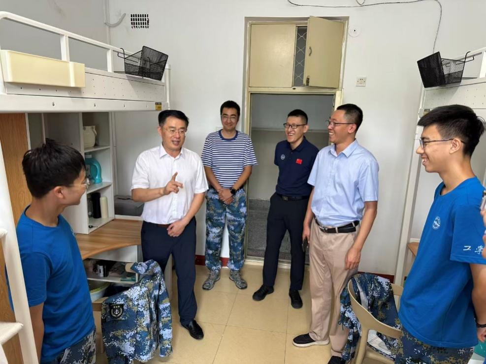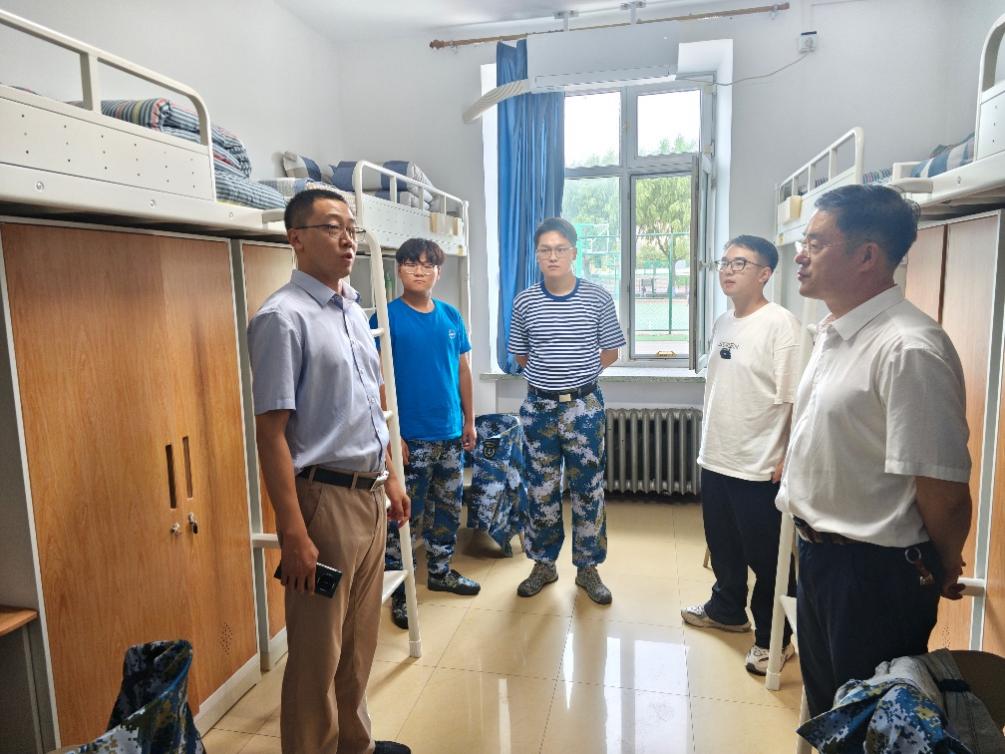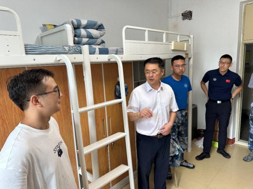 在学生第二公寓走访中,学院领导细致询问了新生的生活适应、学业规划等方面情况,并就生活习惯养成、和谐寝室关系构建等方面与新生们亲切交流。