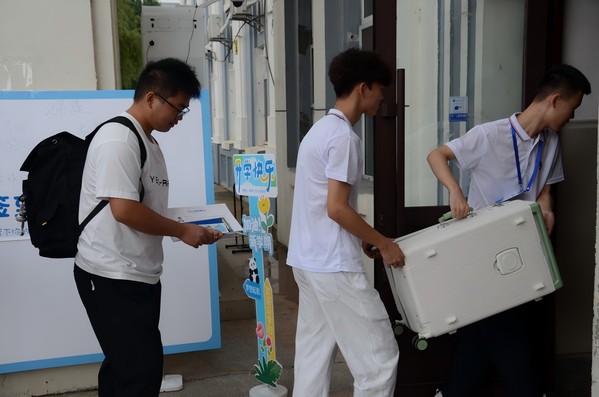 8月29日早7时,学院本科生迎新工作团队及学生志愿者均已全部就位。在新生即将入驻公寓的报到接待处,各类指示牌布置得整齐划一,标识清晰,为新生提供高效便捷的引导服务。此外,学院特别设立了家长休息区、饮水供应点及行李寄存处,竭诚为远道而来的学生及其家长提供细致周到的服务。