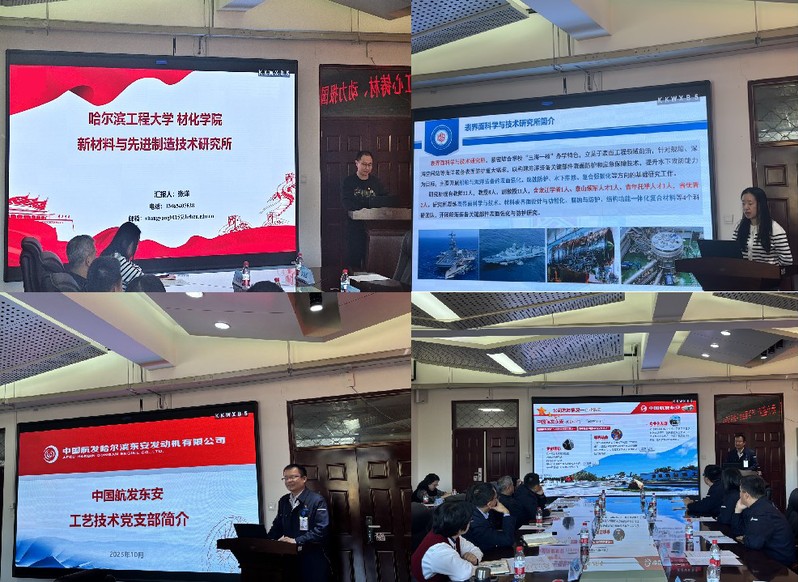 10月26日上午,pp电子官方网站新材料与先进制造技术研究所教工党支部、表界面科学与技术研究所教工党支部、中国航发哈尔滨东安发动机有限公司工艺技术部党支部联合举办的“红心铸材、动力报国”产学研融合主题党日活动在pp电子官方网站基础楼349会议室举行。