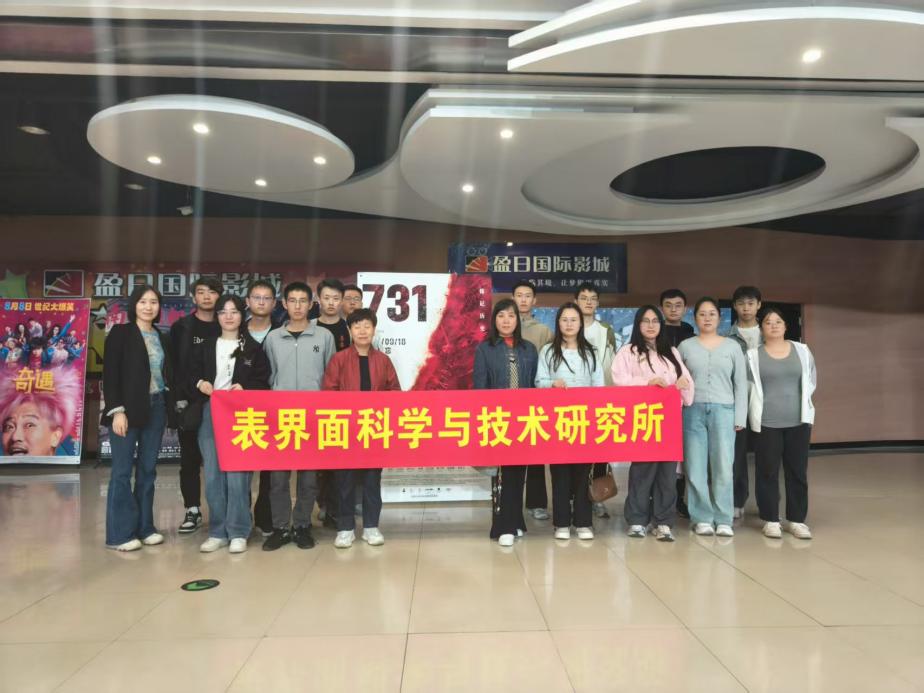 为深刻铭记历史,传承红色基因,进一步激发师生的爱国情怀与责任担当,表界面科学与技术研究所于2025年9月19日组织师生集体观看《731》电影,表界面科学与技术研究所所长刘金娜,教师高卫红、王香、张晓红,研究生辅导员(教师)郑卫、张丽丽及所内14名研究生参加。